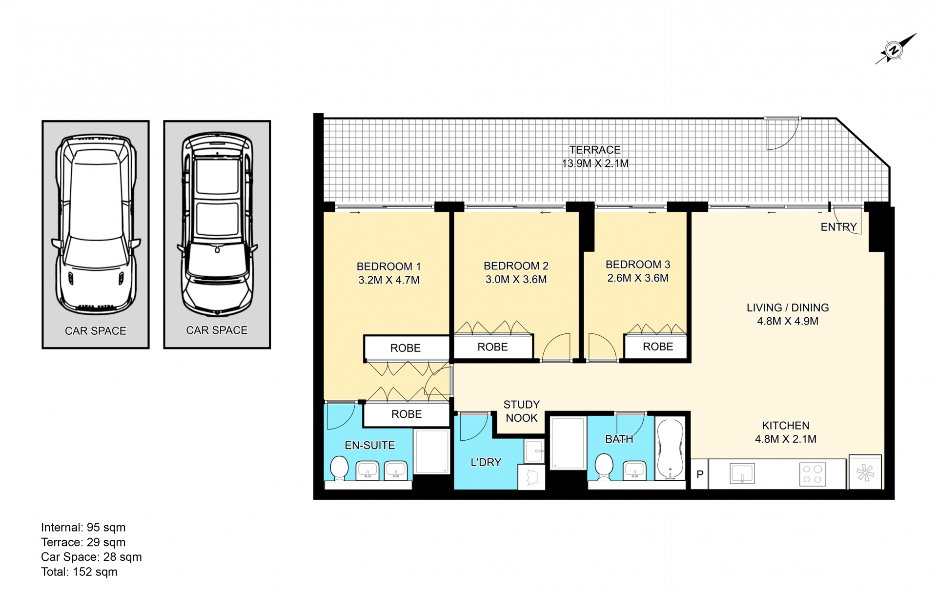 - 2 secure car spaces plus storage cage